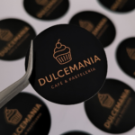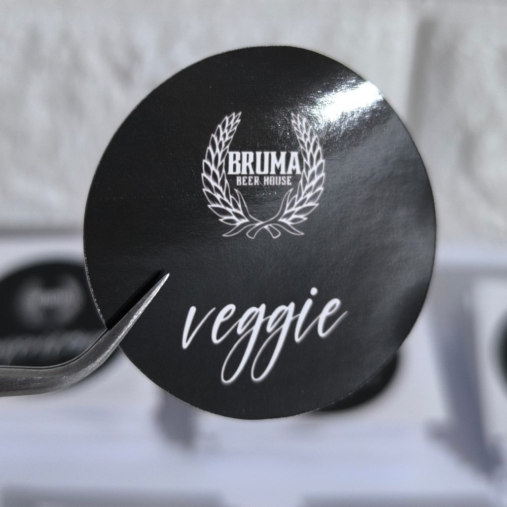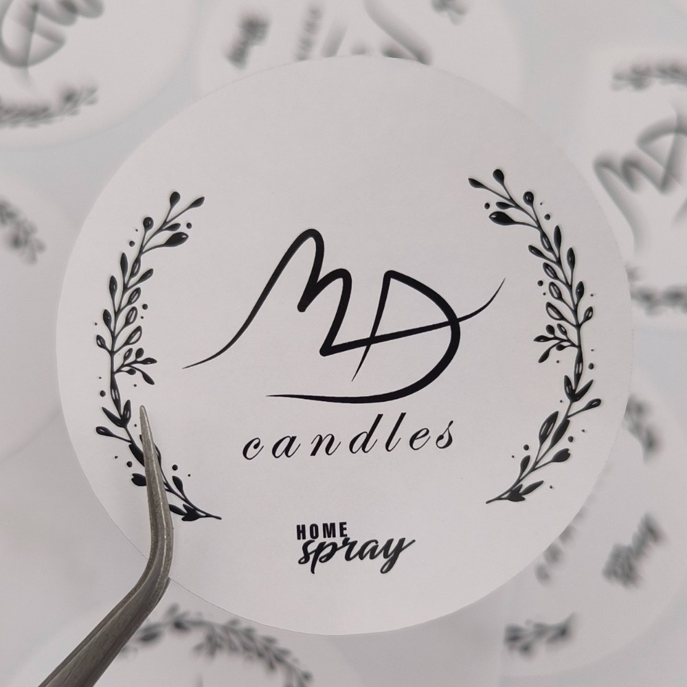 Etiquetas adhesivas por plancha impresas en papel blanco común y troqueladas de la forma que deseas.